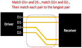 如果您有多個差分對攜帶并行數據,則每個差分對都需要匹配,然后這些對必須彼此匹配。如下所示,其中單個驅動程序正在將并行數據發(fā)送到單個接收器。這樣可確保每個差分對都能充分消除共模噪聲,并確保接收并行數據而不會出現(xiàn)位之間的偏差。