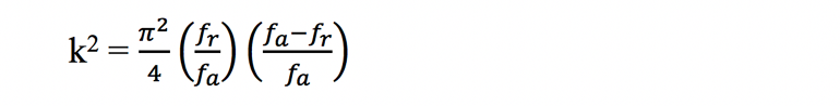 其中k 2是耦合系數(shù),f r 是諧振頻率,而f a 是反諧振頻率。