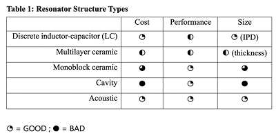 那么,什么是諧振器?各種潛在的共振結(jié)構(gòu)被用來產(chǎn)生用于不同應(yīng)用的濾波器(表1)。