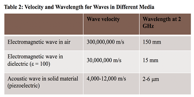 基于壓電效應(yīng)的聲波諧振器由于其緊湊的尺寸而與移動電話應(yīng)用非常有吸引力,因為其緊湊的尺寸與各種介質(zhì)中感興趣頻率的波長有關(guān)(表2)。