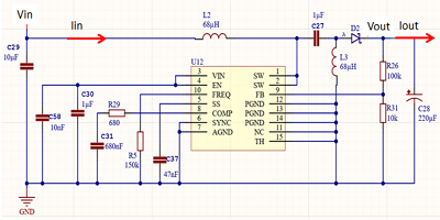 我們的第二個(gè)示例更為復(fù)雜:開(kāi)關(guān)穩(wěn)壓器。如圖5所示的降壓-升壓轉(zhuǎn)換器是一個(gè)電壓和電流都變化的系統(tǒng)。在此示例中,輸入電壓范圍為10V至20V,輸入電流也不明,因?yàn)樗踩Q于輸入電壓,設(shè)計(jì)輸出電壓固定為13.5V,所需的輸出負(fù)載電流為80mA。