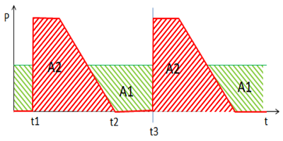 實(shí)際上,積分計(jì)算面積,該面積受功率曲線限制。在圖2中,改變功耗為A2,恒定功耗為A1。如果兩個(gè)功耗是從同一設(shè)備測(cè)量的,則兩種情況下的積分計(jì)算將得出相同的結(jié)果,因此A2的面積等于A1的面積。