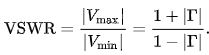 傳輸線中最大電壓和最小電壓的絕對值之比稱為電壓駐波比或VSWR。通過傳輸線的低VSWR意味著電子設備連接良好,并且電流中的任何中斷都將更容易找到。VSWR由以下公式定義。