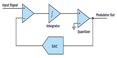 噪聲整形是另一種減少量化噪聲的技術。在sigma-delta ADC中,在環路濾波器之后的環路內使用低分辨率量化器(一位到五位)。DAC用作反饋,從輸入中減去量化信號,如圖5所示。