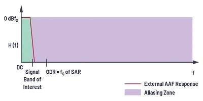 為了在高性能應用中消除混疊,使用了更高階的抗混疊濾波器來避免任何數量的折返??够殳B濾波器是一種低通濾波器,其帶寬限制了輸入信號,并確保信號中沒有超出可以折返的目標帶寬的頻率分量。濾波器的性能將取決于帶外信號與fS / 2的接近程度以及所需的衰減量。