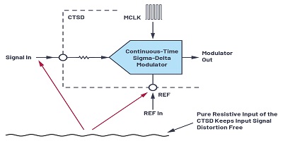 CTSD的兩個主要優點是固有的混疊抑制以及信號和參考的電阻輸入。