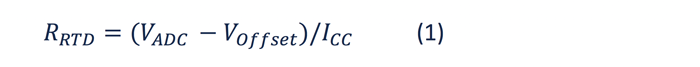 為了進行校準,我們將需要讀取兩個電阻并計算恒流源值和組合誤差,我們將其稱為V Offset。校準后的I cc和V Offset值用于轉換RTD溫度讀數。